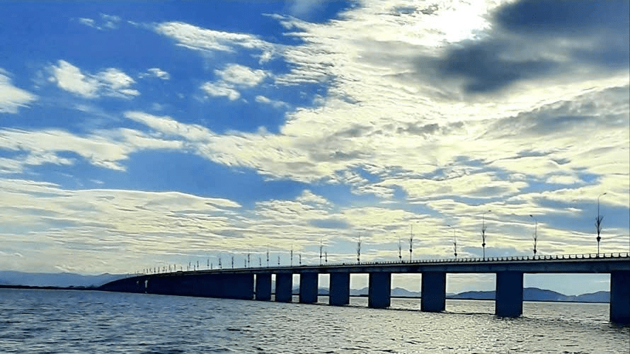 Lắc qua lắc lại, vòng lên rồi lạng xuống gần 1 giờ thì đoàn cũng đến Phú yên. Thành phố Tuy Hòa lướt nhanh qua cửa kính, lúc này cả đoàn khá vội vì sắp đến nơi để làm thiện nguyện. Đoàn không ghé lại Phú yên mà tranh thủ đi ngay đến Quy nhơn. Trên đường dến nơi từ thiện cả đoàn băng qua cầu Thị nại. Cây cầu dài nhất Việt nam băng qua đầm Thị Nại, chiều dài gần 2,5 km nối thành phố Quy nhơn với bán đảo Phương Mai. Lúc đi ngang qua trời còn nắng to nên chưa thấy hết vẻ đẹp của cây cầu, cầu sẽ đẹp nhất khi hoàng hôn bắt đầu và lúc tối hẳn vì được chiếu sáng bằng hàng trăm bóng đèn kéo dài hơn 7 km.