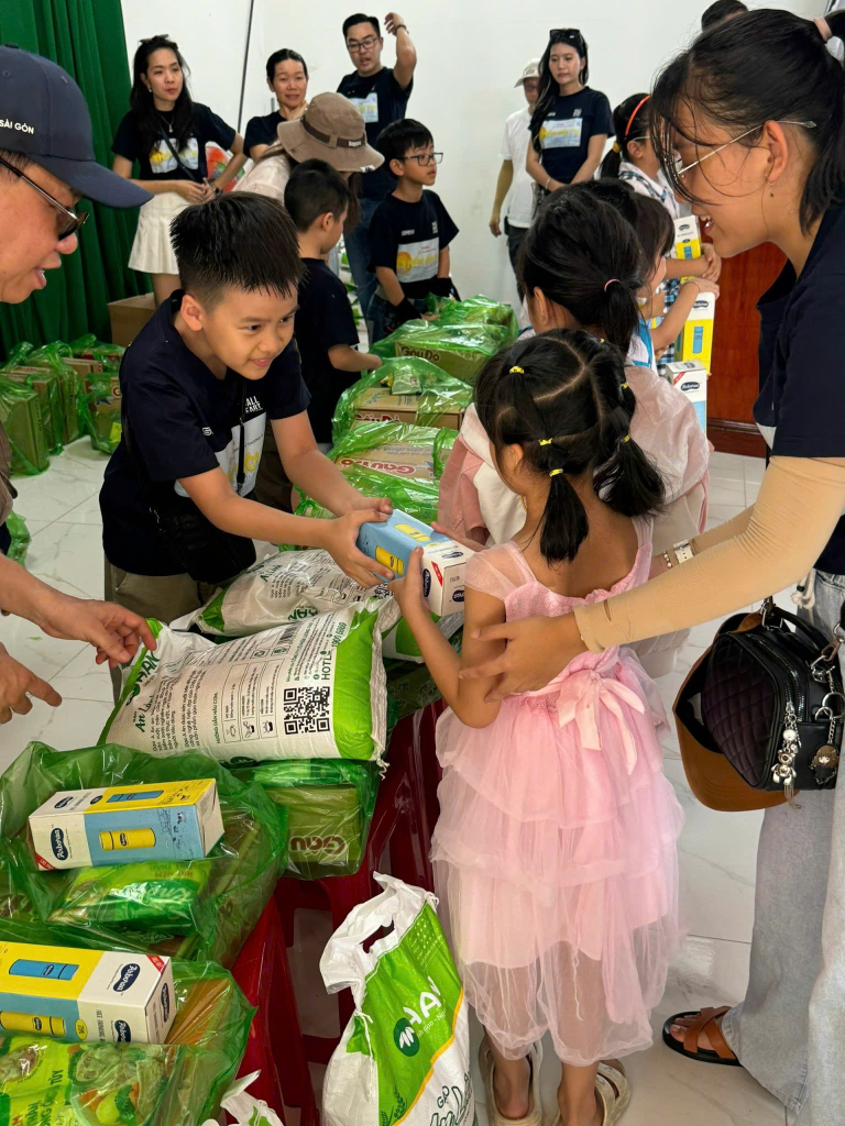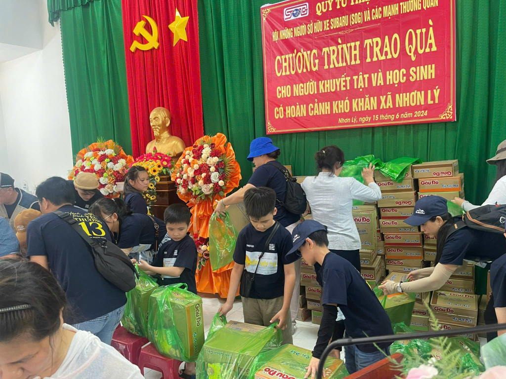 Gạo, mì tôm, bột nêm, nước chấm là mặt hàng thường xuyên có mặt trong các phần quà. Riêng mỗi người trong danh sách còn được nhận một bì thư tiền mặt phát trực tiếp từ 1 nhóm mạnh thường quân trong đoàn. Các cháu nhỏ của đoàn tham gia vào việc phát quà hết sức chuyên nghiệp. Lần nào ngắm mấy đứa nhỏ trong đoàn khệ nệ mang các phần quà và trao cho các bạn cùng lứa hay lớn hơn nhiều không may mắn bằng tụi nó, cũng cho nó một cảm giác thán phục cách dạy con của các anh chị trong đoàn. Những bài học thực hành sẻ chia đầu đời này sẽ in dấu mãi trong ký ức bọn nhỏ và sau này khi lớn lên có cơ hội tụi nó sẽ làm nhiều việc tốt giúp cho cuộc đời hơn nữa. Thật tiếc vì con bé nhà nó vẫn chưa ra tới được cùng với đoàn vì bận chuyện thi cử, học hành. Đến phần phát quà cho những hoàn cảnh khó khăn, nhìn những ông bà lớn tuổi đi không nổi lên đến bục nhận quà, nhìn những người chỉ còn 1 chân, 1 tay nguyên vẹn nó cảm thấy mình còn quá may mắn, những ông bà này được các bạn trẻ trong nhóm gánh gồng quà ra tận xe cho họ, lúc đó nó chỉ ước mình có nhiều khả năng hơn để giúp cho những hoàn cảnh này.